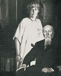 Елена Ивановна тогда ее Шапошникова (Кот), талантливая пианистка, которой запретили поступать в консерваторию, в 1899 году (ей - 20 лет) летом с матерью в Бологое Новгородской губернии у своей тети Путятиной, в имении ее мужа — князя Путятина, археолога и коллекционера повстречала художника и археолога Николая Константиновича Рериха (Собака). Ему уже 25 лет. Молодые люди полюбили друг друга и, несмотря на то, что родственники Елены были против их свадьбы, в 1901 году обвенчались в церкви Императорской Академии художеств на Васильевском острове (Санкт-Петербург). 1899 был Волшебным для нее (Расслабления), 1901 - у него Лихая удача! | | Кваша Г. С. · Перекрестки любви · 30-07-2011 |  |