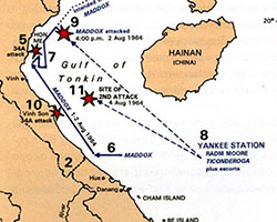 Два Тонкинских эпизода произошли с разницей в два дня, 2 и 4 августа 1964 года. И если с первым эпизодом все более менее ясно, действительно стреляли (и американцы и вьетнамцы), хотя и промазали (те и эти), то второй эпизод одна сплошная мистика - ничего не понятно. Но именно второй эпизод (которого возможно и не было) вызвал агрессию США, 5 августа началась операция "Пронзающая стрела", американская авиация начала бомбить Северный Вьетнам. Далее принимается Тонкинская резолюция (7 августа -Конгресс, 10 августа - президент), которая позволила отправлять крупные американские подразделения в Южный Вьетнам и бомбить Северный Вьетнам без объявления войны | | Кваша Г. С. · 11-08-2014 |  |